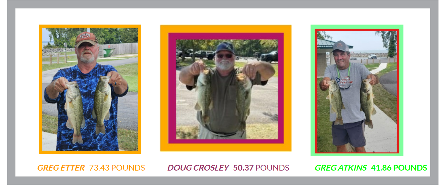 With the tournament schedule completed , Greg Etter easily took the top position for 2025 Mr. Bass (Boater) with 73.43 pounds. Doug Crosley fished in second place with 50.37 pounds, followed by Greg Atkins in third with 41.86 pounds.